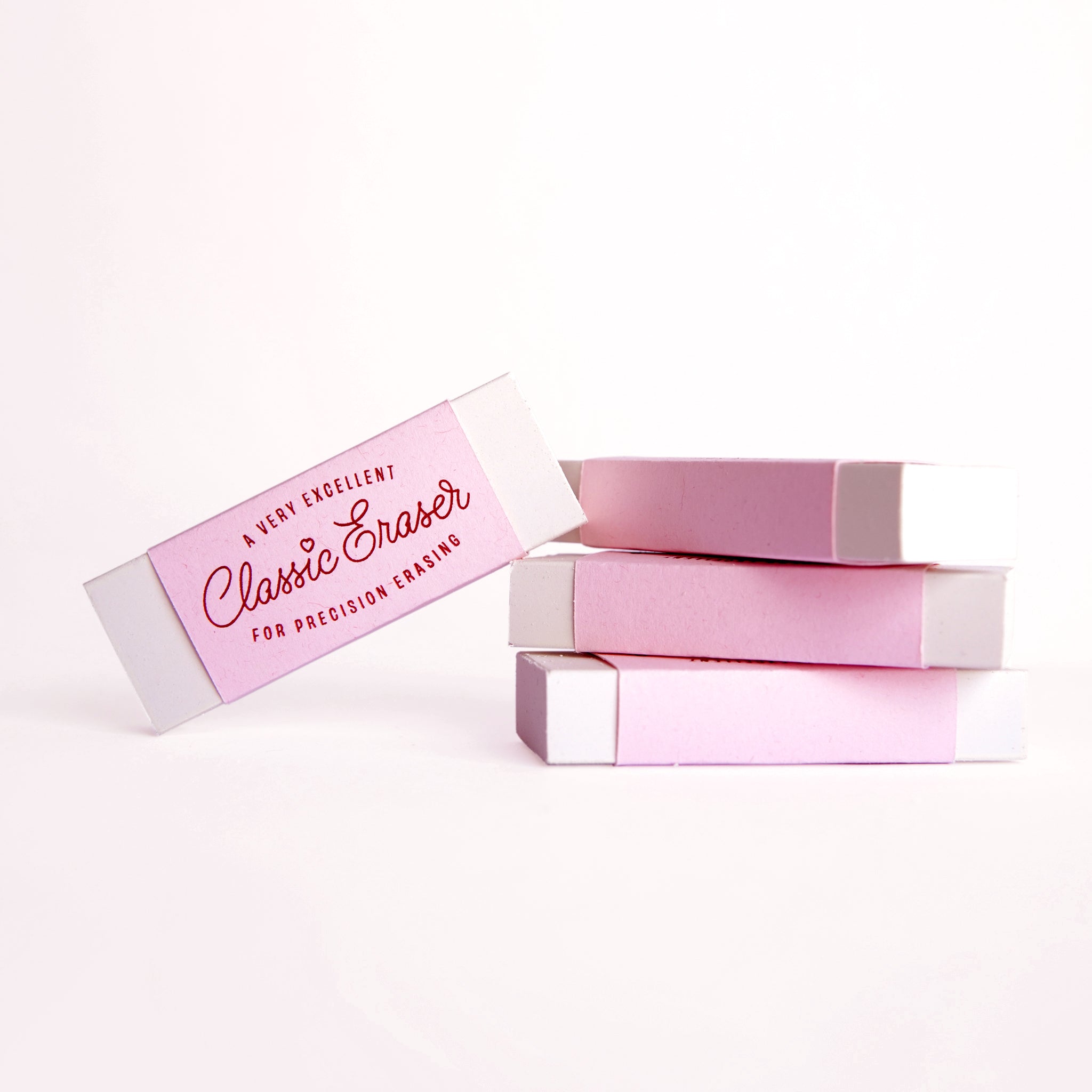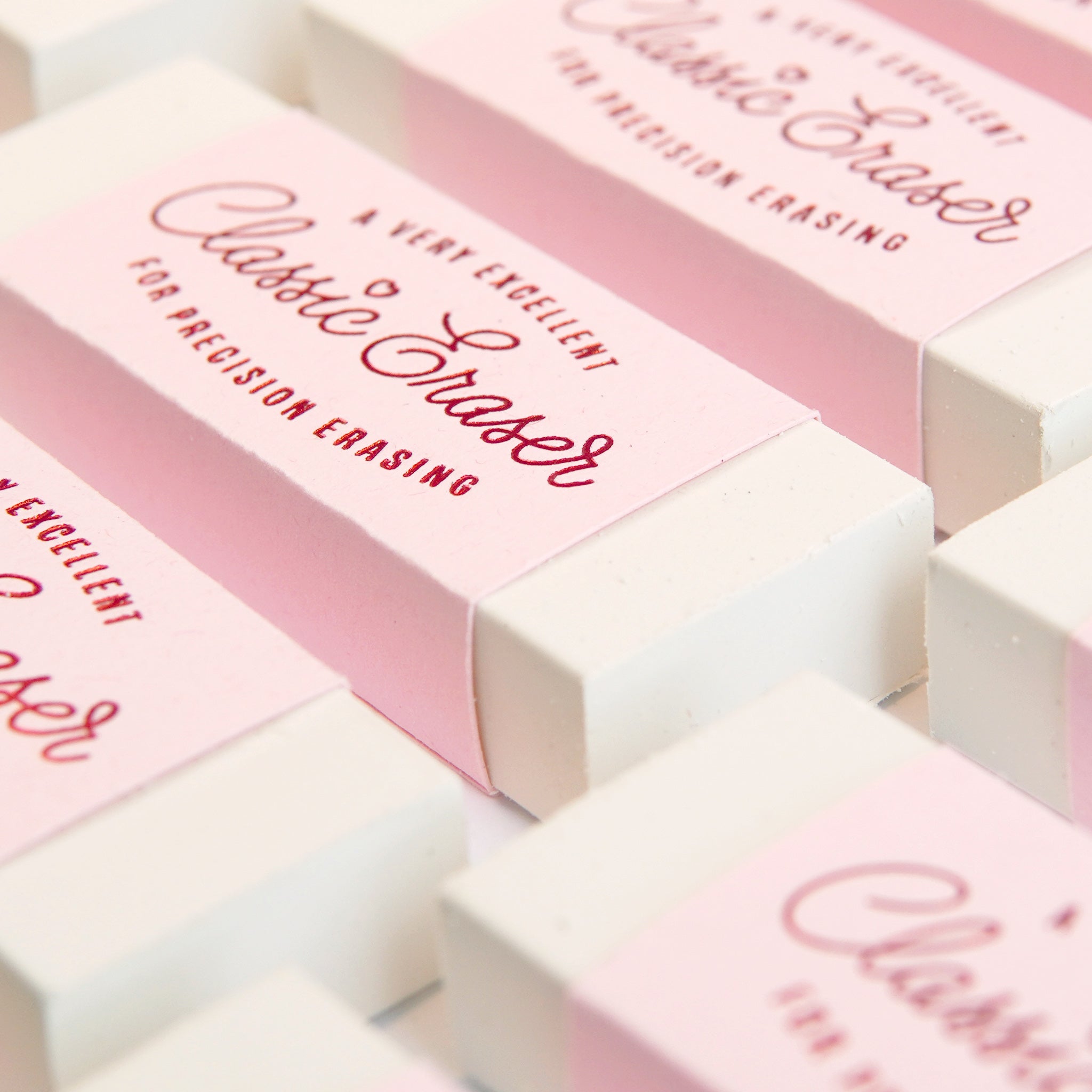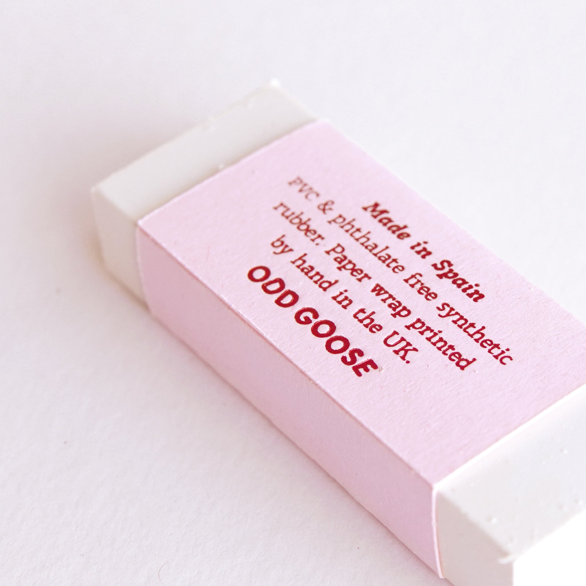 What better way to rub out mistakes than with the classic? Our PVC-free and phthalate-free synthetic rubber eraser as beautiful as it is impressive. Try it out on strong pencil marks and see just what a very excellent classic eraser can do! The rubber is built in Spain and the thick paper wrap is foil printed by hand on our workbench in Britain.