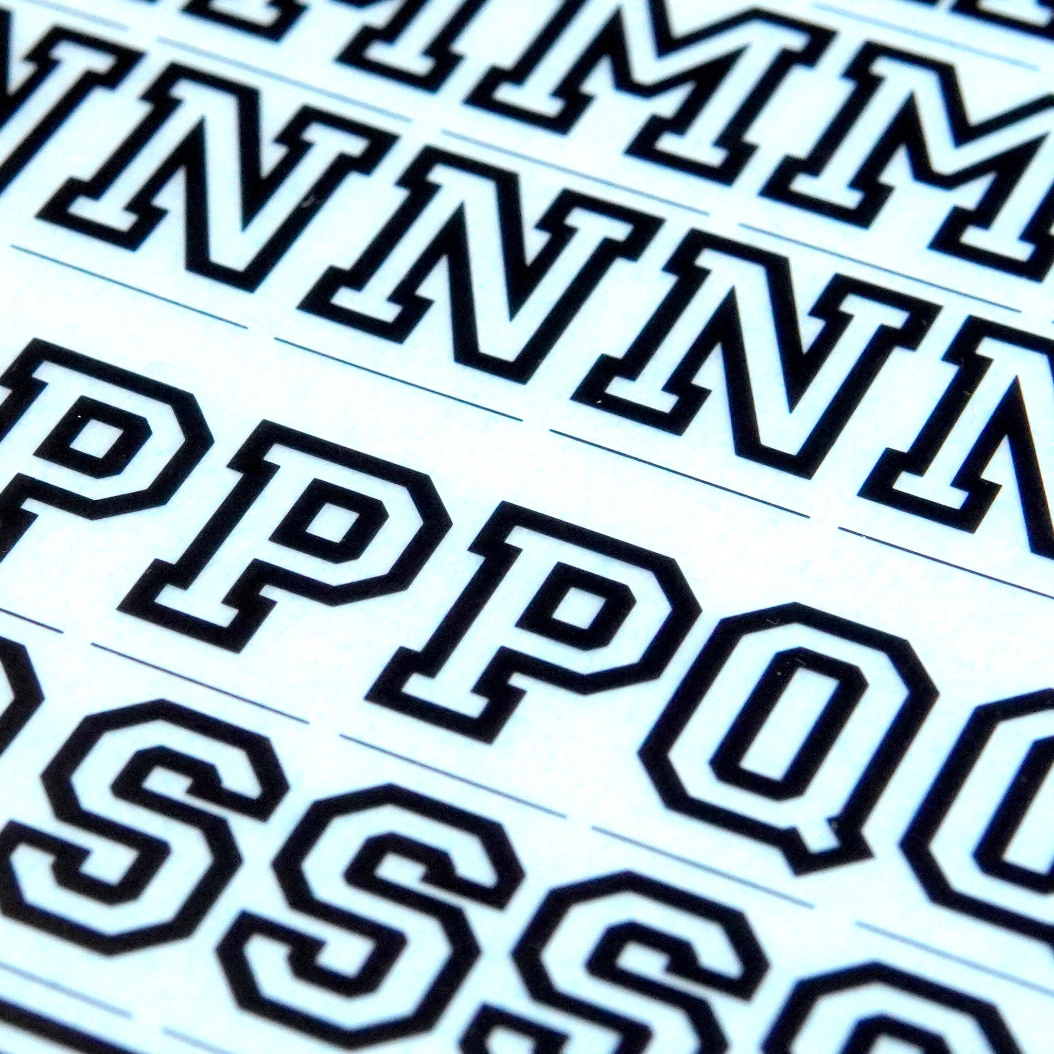 This font is called Princetown, designed in 1981 and set here in 48pt size. A blocky design with heavy outlines inspired by the classic look of college sportswear, it'll make for excellent sport-y styling to anything you print it onto.