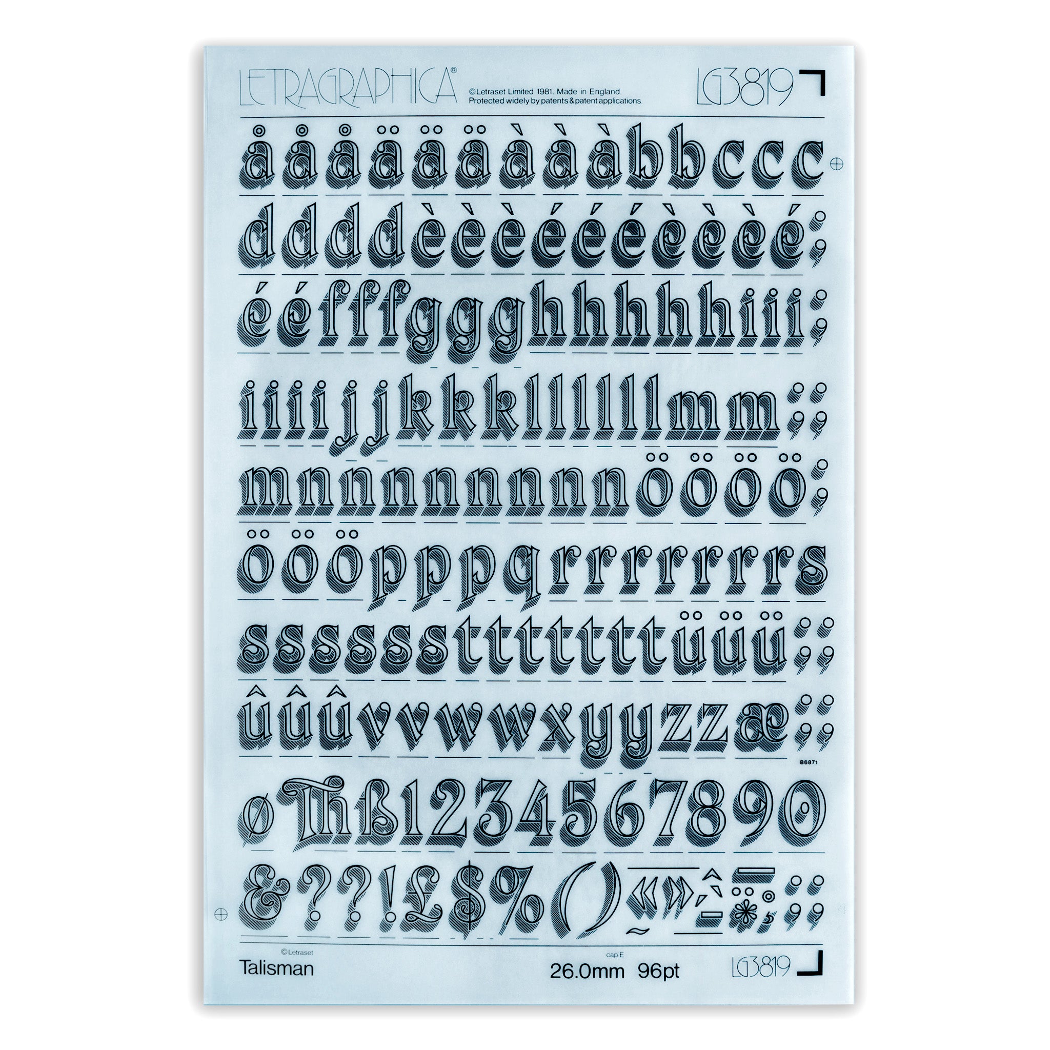 Postage: The Letraset sheet measures 39cm x 24cm and comes wrapped in tissue paper, carefully rolled in a tube for postage. If you have other items in your order, your Letraset may be packed separately.