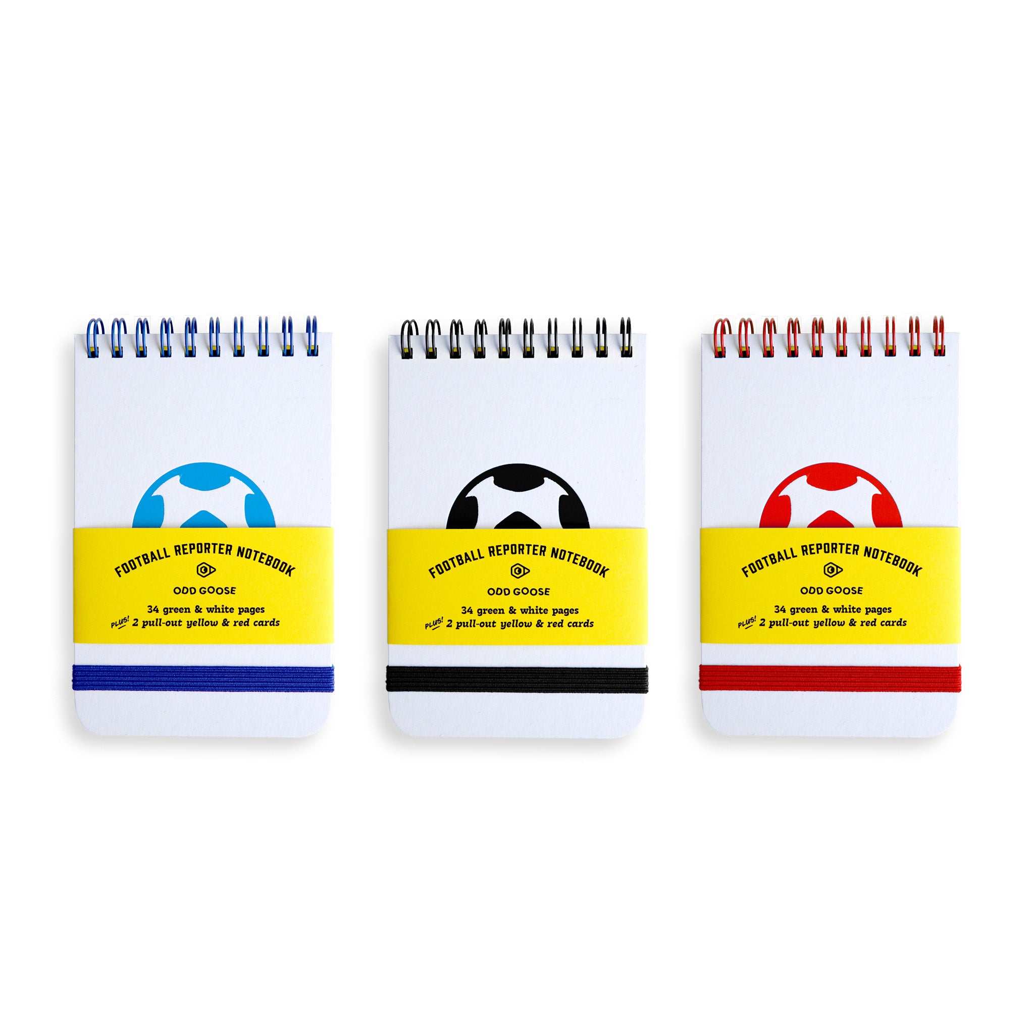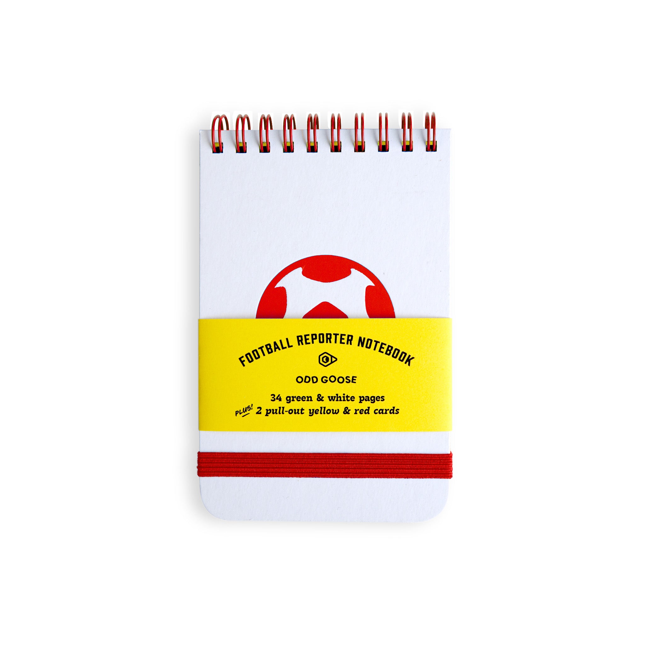Match reports ready! The Footballer Reporter Notebook is tough, light, and built to be carried. It comes with perforated red and yellow ref cards for bookings and send offs, and the rest of the pages are green and white sturdy art paper.