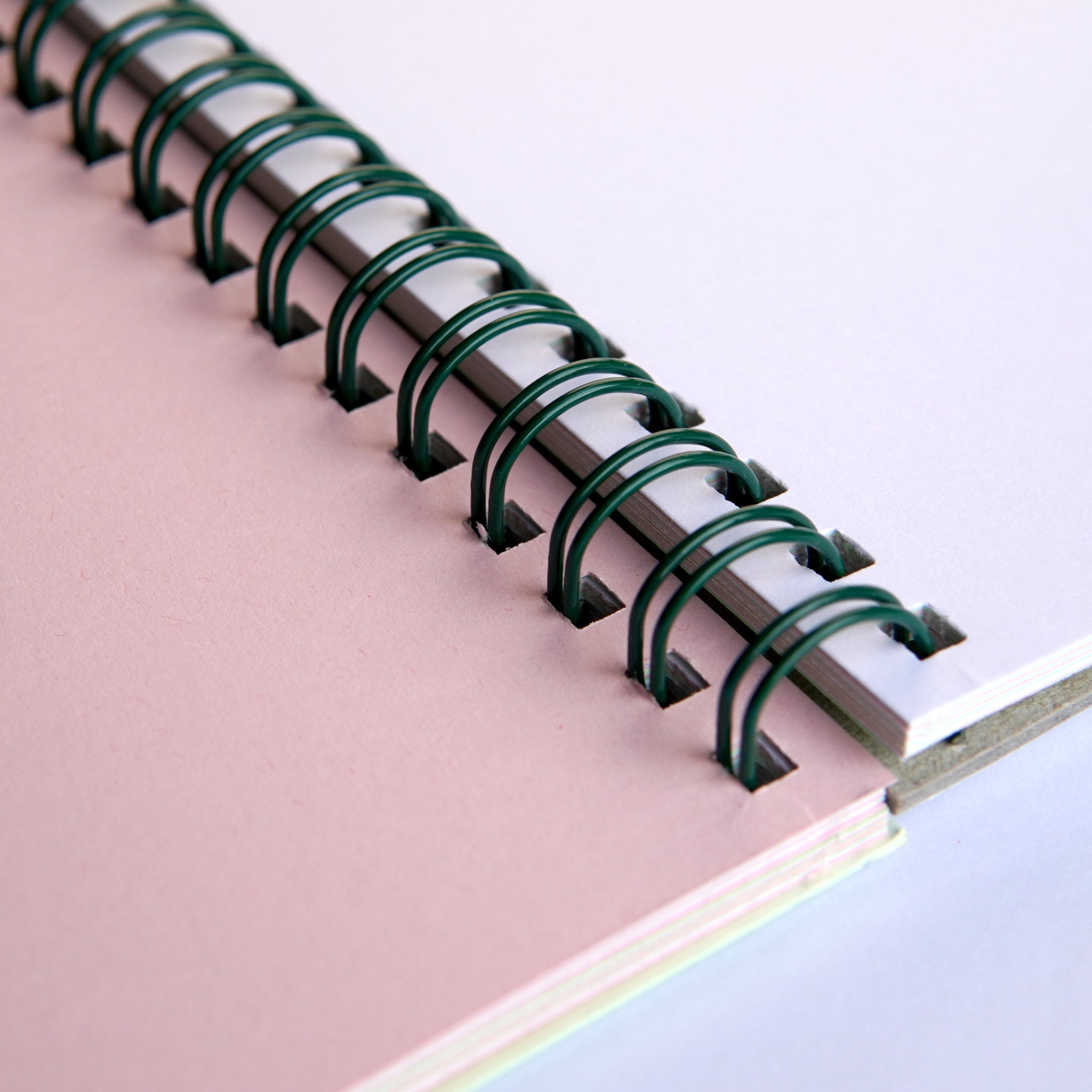 A little square of calm to unwind at the end of a busy day. The art paper inside is a lovely and sturdy set of three peaceful watermellony colours, ready for all kinds of pens, pencils, crayons and paint. The hard back cover makes it perfect for resting on laps, cushions and other soft places. And the wire binding means it comfortably opens all the way.