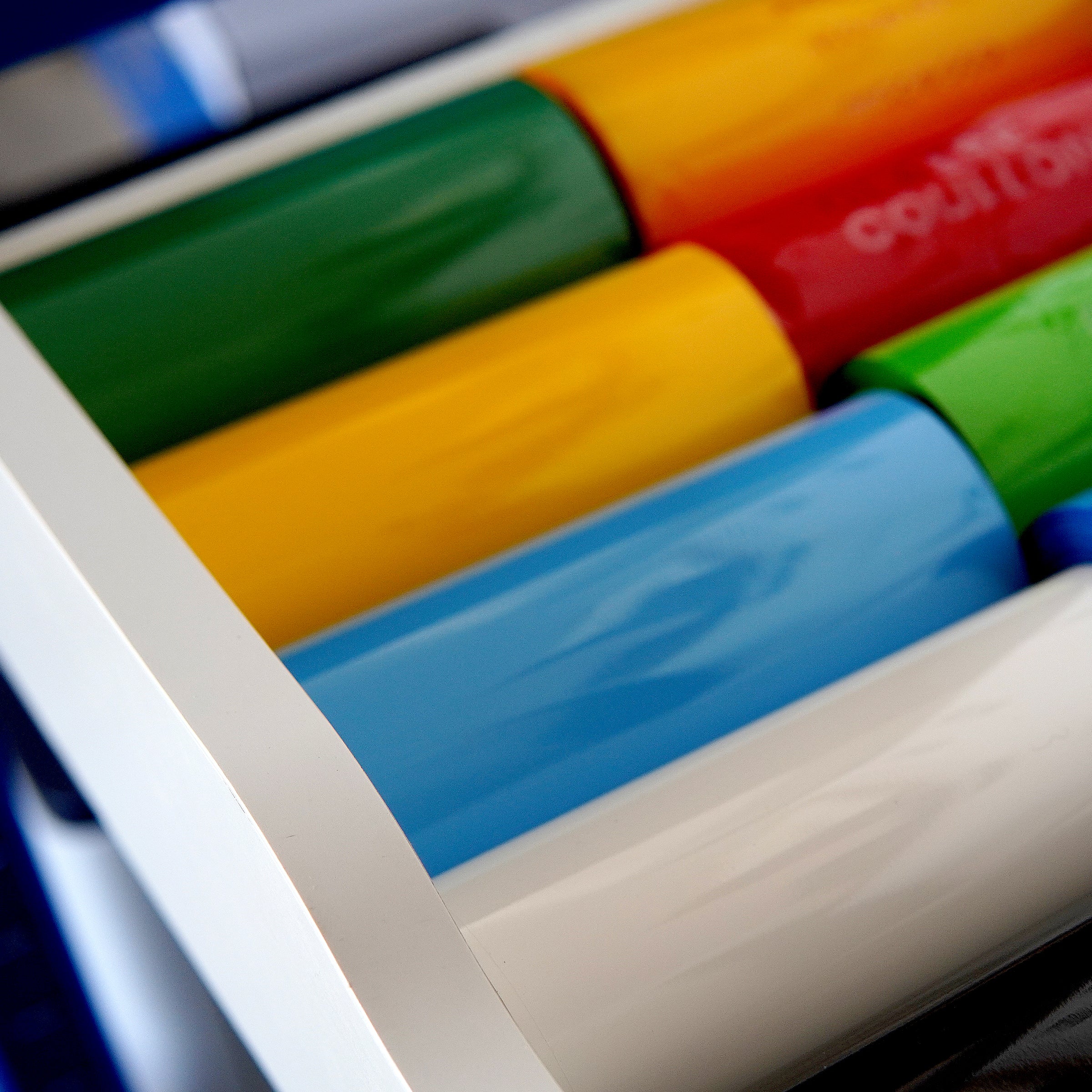 ➼ One by one, each pencil goes in the press with just the right amount of pressure and dwell time.