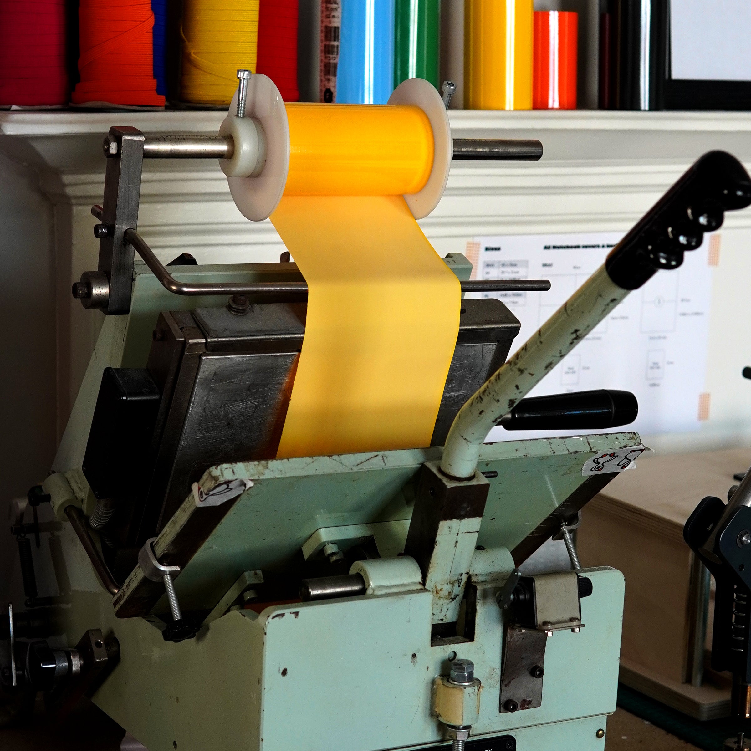 Once the covers are printed, each notebook is counted and collated by hand, page by page. The paper and backing boards are cut down to size, and we fix every elastic by hand with our eyelet press. All our machinery is made in Britain and the EU.
